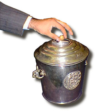 The balls were deposited one by one by each Member, such as is shown in the picture, and then the authorities proceeded to do the computing to find out the final outcome of the voting.