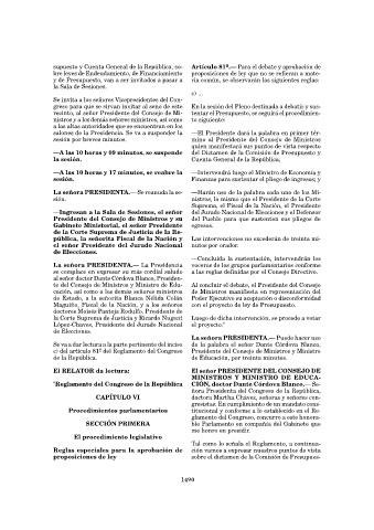 la sesión. Cuenta General de la República;