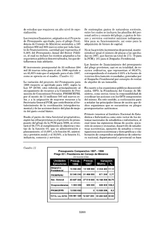 puesto del pliego de la PCM para 1998, se orien- cual tiene las siguientes líneas de acción: ejecu-