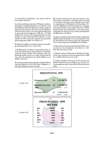 terio de Salud es el 91% del total, llegando a 1 un presupuesto para el año 99 de 502 mil nuevos
