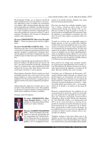 El presidente Toledo, en su discurso del 28 de mento de la deuda externa, dejando una carga