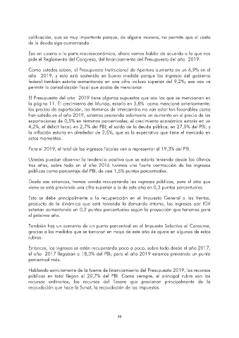 año 2019, y esto está sostenido en buena medida porque los ingresos del gobierno