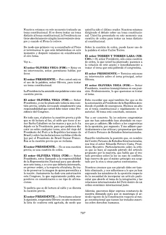 lo siguiente, congresista Olivera: en este momento go constitucional que tienen los tratados suscri-