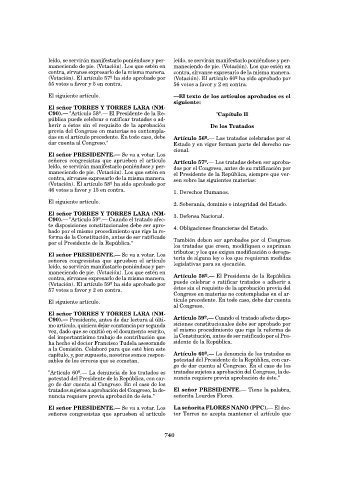C90). Presidente, antes de dar lectura al últi- Artículo 59º. Cuando el tratado afecte dispo-