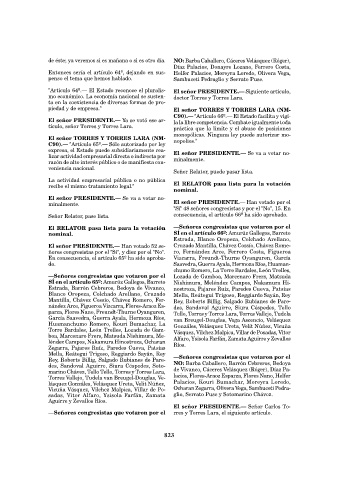 des, Sandoval Aguirre, Siura Céspedes, Soto- NO: Barba Caballero, Barrón Cebreros, Bedoya