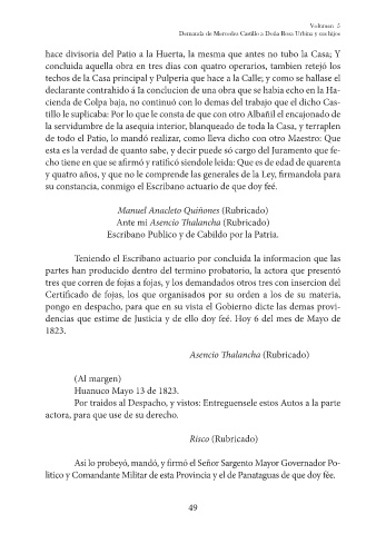 Demanda de Mercedes Castillo a Doña Rosa Urbina y sus hijos