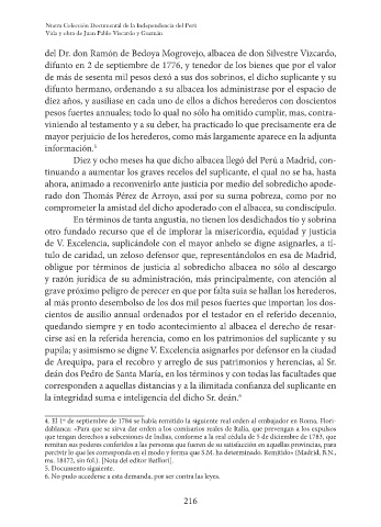 del Dr. don Ramón de Bedoya Mogrovejo, albacea de don Silvestre Vizcardo,