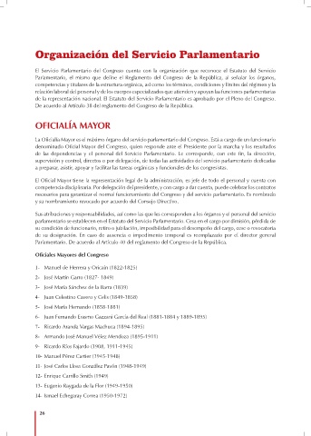 La Oficialía Mayor es el máximo órgano del servicio parlamentario del Congreso. Está a cargo de un funcionario