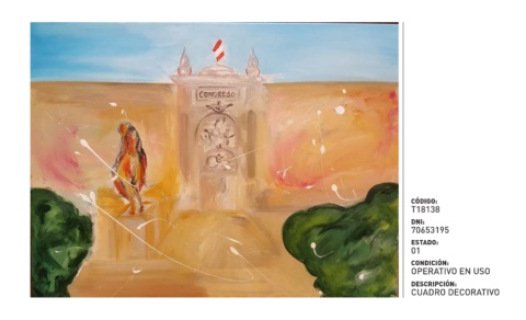 CÓDIGO: T18138 DNI: 70653195 ESTADO: 01 CONDICIÓN: OPERATIVO EN USO DESCRIPCIÓN: CUADRO DECORATIVO