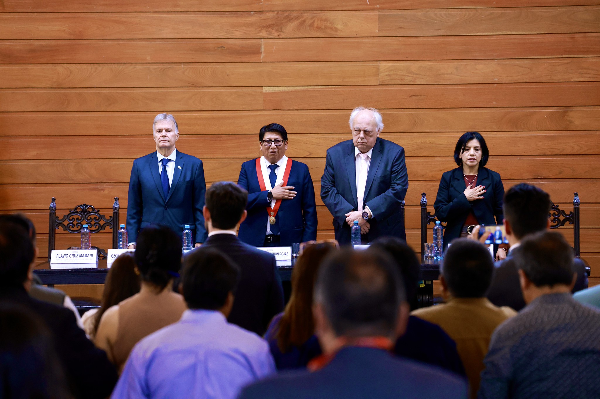 El 14 de marzo de 2025, en la Sala Bolognesi del Congreso de la República del Perú, el Congresista Flavio Cruz Mamani; el Congresista Isaac Mita Alanoca; y la Jefa de la Oficina de Cooperación Internacional, Ing. Carina Palacios, participaron en un conversatorio con la delegación de Comisión de Arbitraje de Beijing BAC/BIAC, conformada por JIAN Lili (Secretaria General), CHEN Fuyong (Secretario General Adjunto), ZHANG Haoliang (Jefe de División), YIN Tong (Asesor Senior), LI Wenzhe (Asesora) y FENG Yihan (Asesora). |