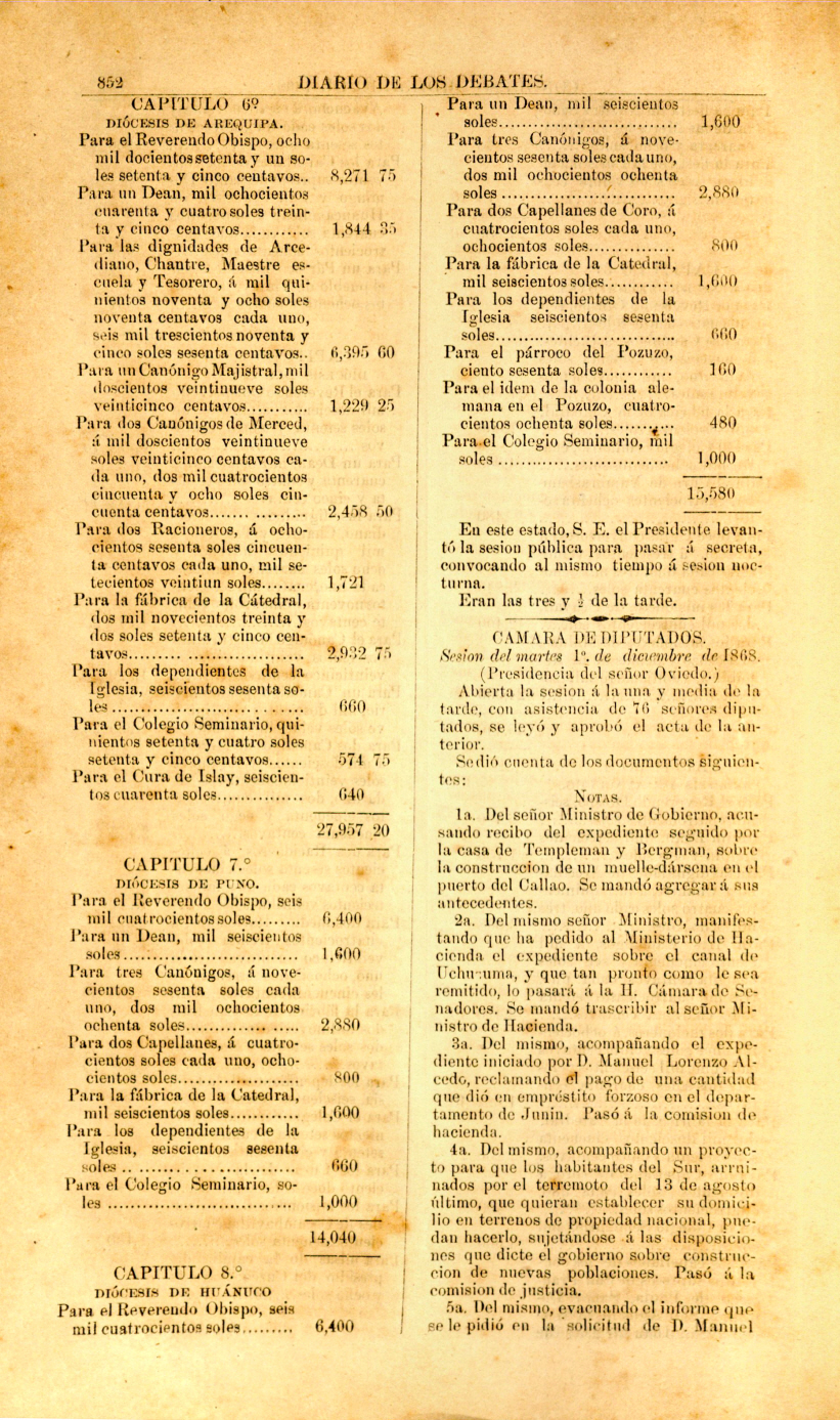 | Sesión del lunes 7 de diciembre de 1868 | Sesión del jueves 10 de diciembre de 1868 | Sesión del 11 de diciembre de 1868 | Sesión del jueves 12 de diciembre de 1868 | Sesión del lunes 14 de diciembre de 1868 |