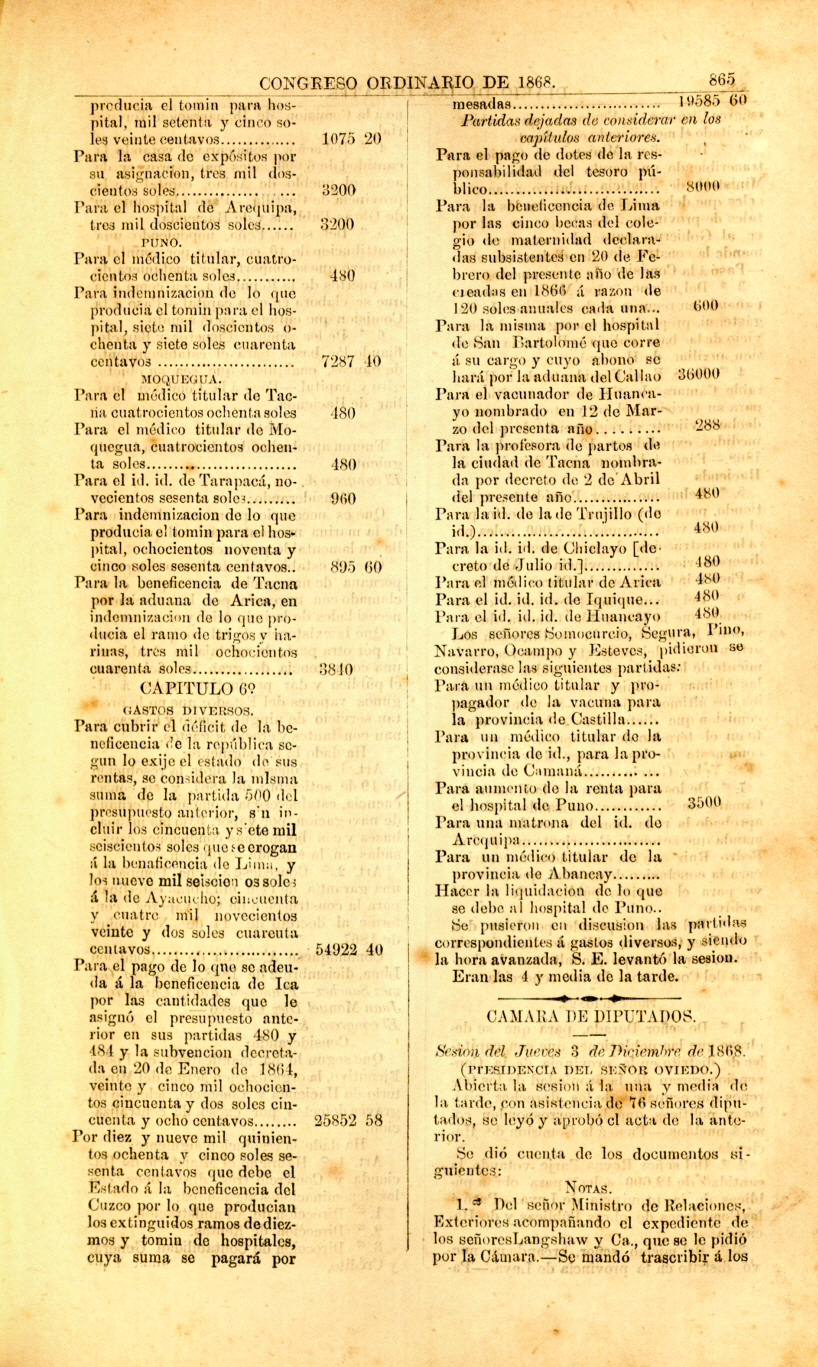 | Sesión del 21 de diciembre de 1868 | Sesión del martes 22 de diciembre de 1868 | Sesión del 23 de diciembre de 1868 | Sesión del 24 de diciembre de 1868 | Sesión del jueves 30 de diciembre de 1868 |