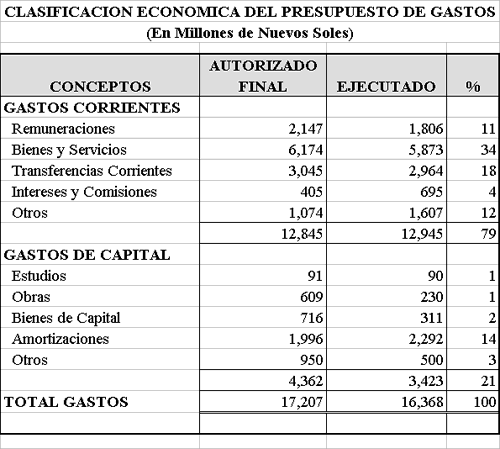 De otro lado, la ejecución del gasto alcanzó S/.16,368 millones que representa un menor egreso del 5% con respecto al presupuesto autorizado.