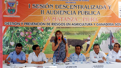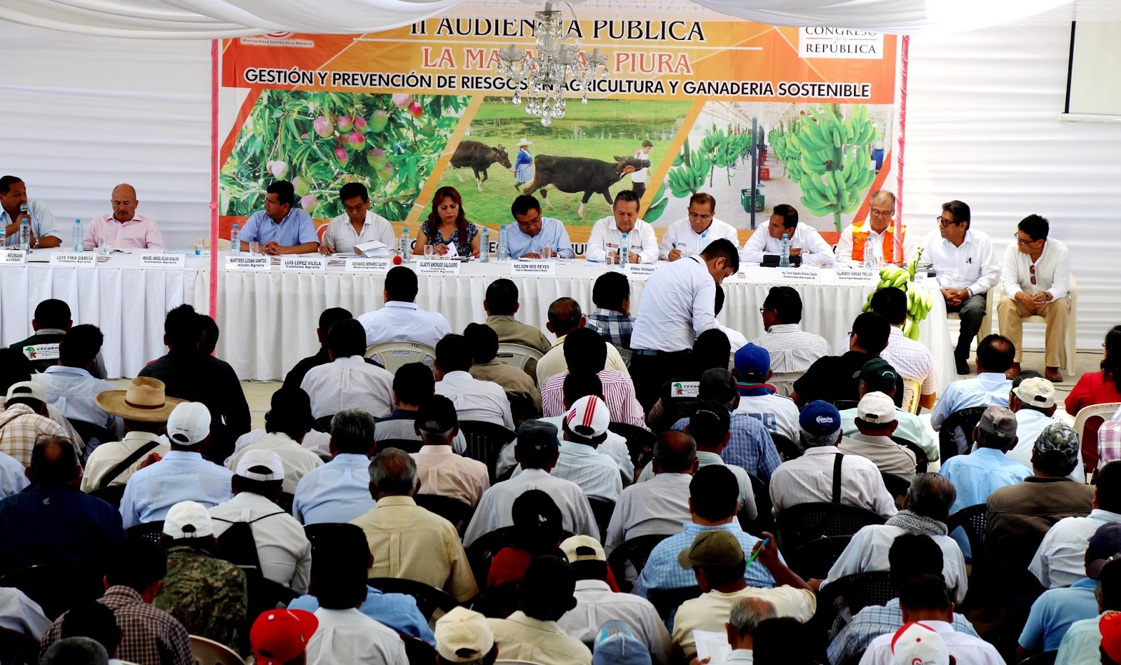 Fue durante la Primera Sesión Descentralizada y II Audiencia Pública de ese grupo de trabajo, denominada “Gestión y prevención de riesgos en agricultura y ganadería sostenible”, realizado en el coliseo “Pedro Julio Gómez Quesada”, distrito La Matanza, en la provincia piurana de Morropón,Su colega de bancada Luis López expuso sobre su propuesta legislativa que plantea la declaración de necesidad pública e interés nacional el programa de titulación de las tierras de las comunidades campesinas de la zona.