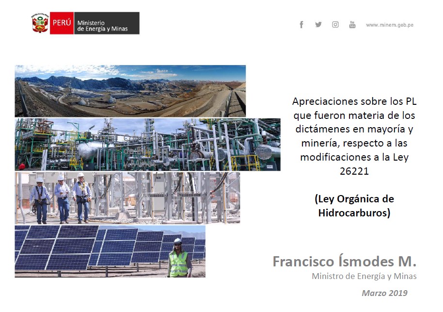 VII S.O.   20/03/19  Apreciaciones sobre PL que fueron materia de los dictámenes en mayoría y minoría, respecto de la Ley Orgánica de Hidrocarburos Ministerio de Energía y Minas