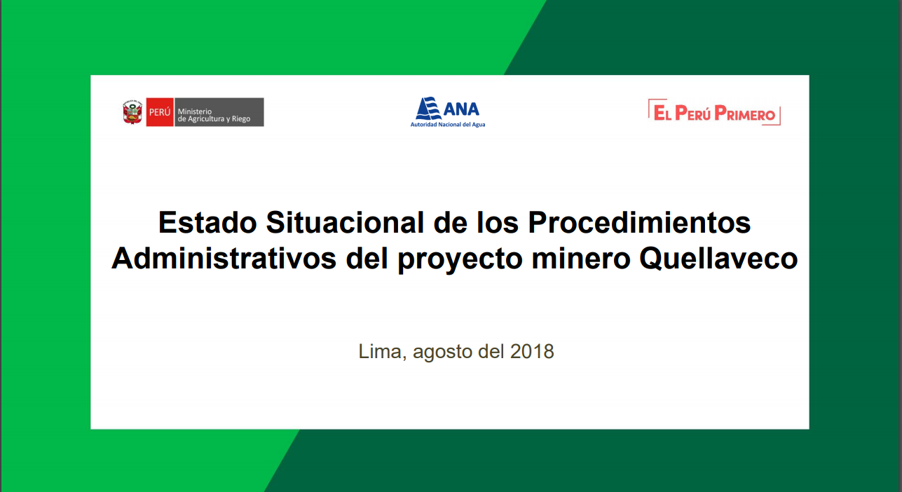 I S.O. 22/08/18 Estado situacional de los procedimientos administrativos del proyecto minero Quellaveco Autoridad Nacional del Agua