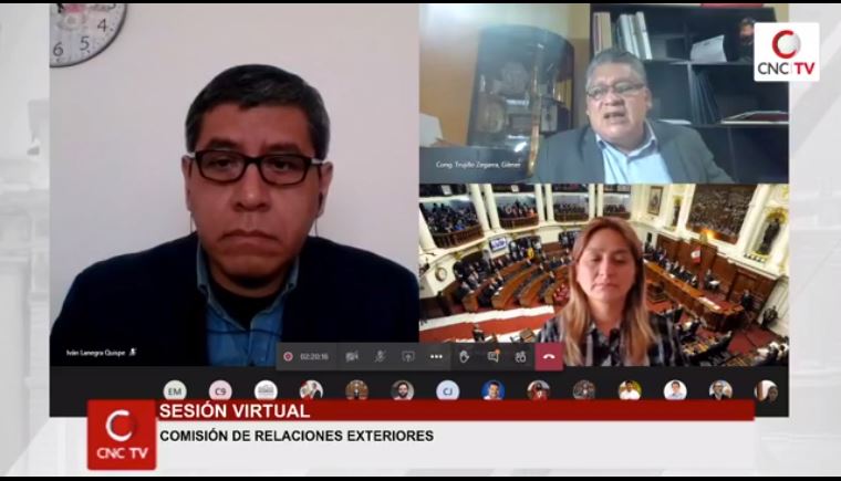 La Comisión de Relaciones Exteriores continuó con la agenda sobre el Acuerdo de Escazú, contando en su Décimo Sétima Sesión Ordinaria del 12 de octubre 2020, con la presentación del señor Iván Lanegra Quispe, Secretario General de la Asociación Civil Tansparencia, señora María Isabel León Klenke, Presidenta de la Confederación Nacional de Instituciones Empresariales Privadas - CONFIEP y doctor Hernán Cuba Chávez, representante de CONFIEP y como último invitado señor Héctor Soto García, Alcalde Distrital de Contamana y Presidente de la Asociación de Municipalidades de la Región Loreto - AMRELOR