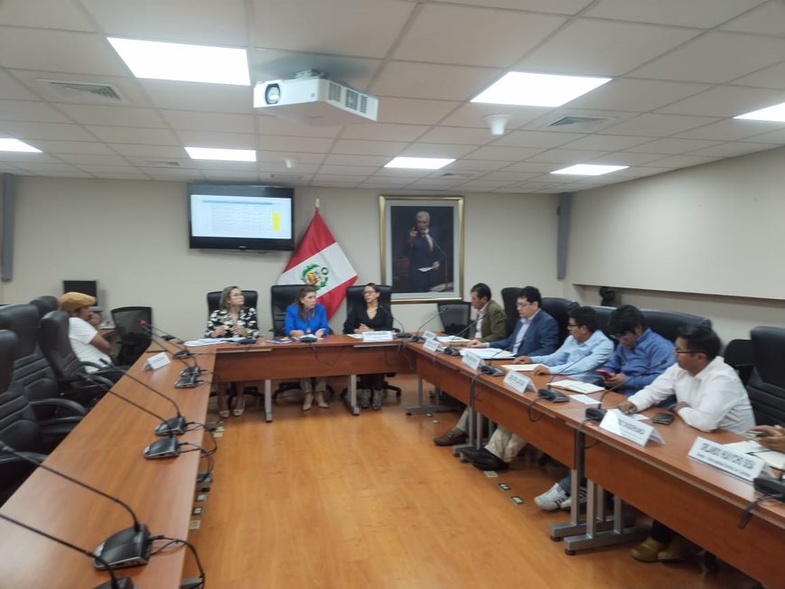 Asesores de la Comisión de Economía, Banca, Finanzas e Inteligencia Financiera, de la Comisión Agraria, Secretarios Técnicos y asesores de la Comisión de Descentralización, Regionalización, Gobiernos Locales y Modernización de la Gestión del Estado y la Comisión de Vivienda y Construcción desarrollan una mesa de trabajo con miembros de las Naciones Unidas.