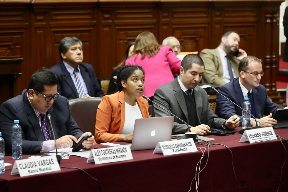 Presidenta de la Comisión de Economía, Banca, Finanzas e Inteligencia Financiera Rosangella Barbarán se reúne con funcionarios integrantes de la Delegación del Banco mundial. la Organización para la Cooperación y el Desarrollo Económicos (OCDE) y el Viceministro de Economía Alex Contreras.