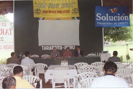 | AURELIO PASTOR EN CONFERENCIA - HOTEL RIO SHILCAYO | AURELIO PASTOR RODEADO DE TARAPOTINOS |