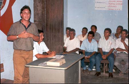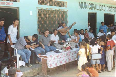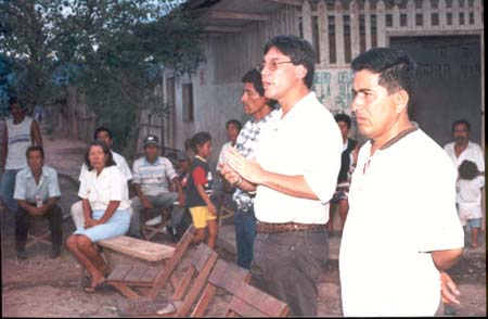 | AURELIO PASTOR DIRIGIENDOSE A LOS POBLADORES DEL HUALLAGA | AURELIO PASTOR EN UN CLUB DE MADRES DE SAN MARTIN (MANGUEANDO) |