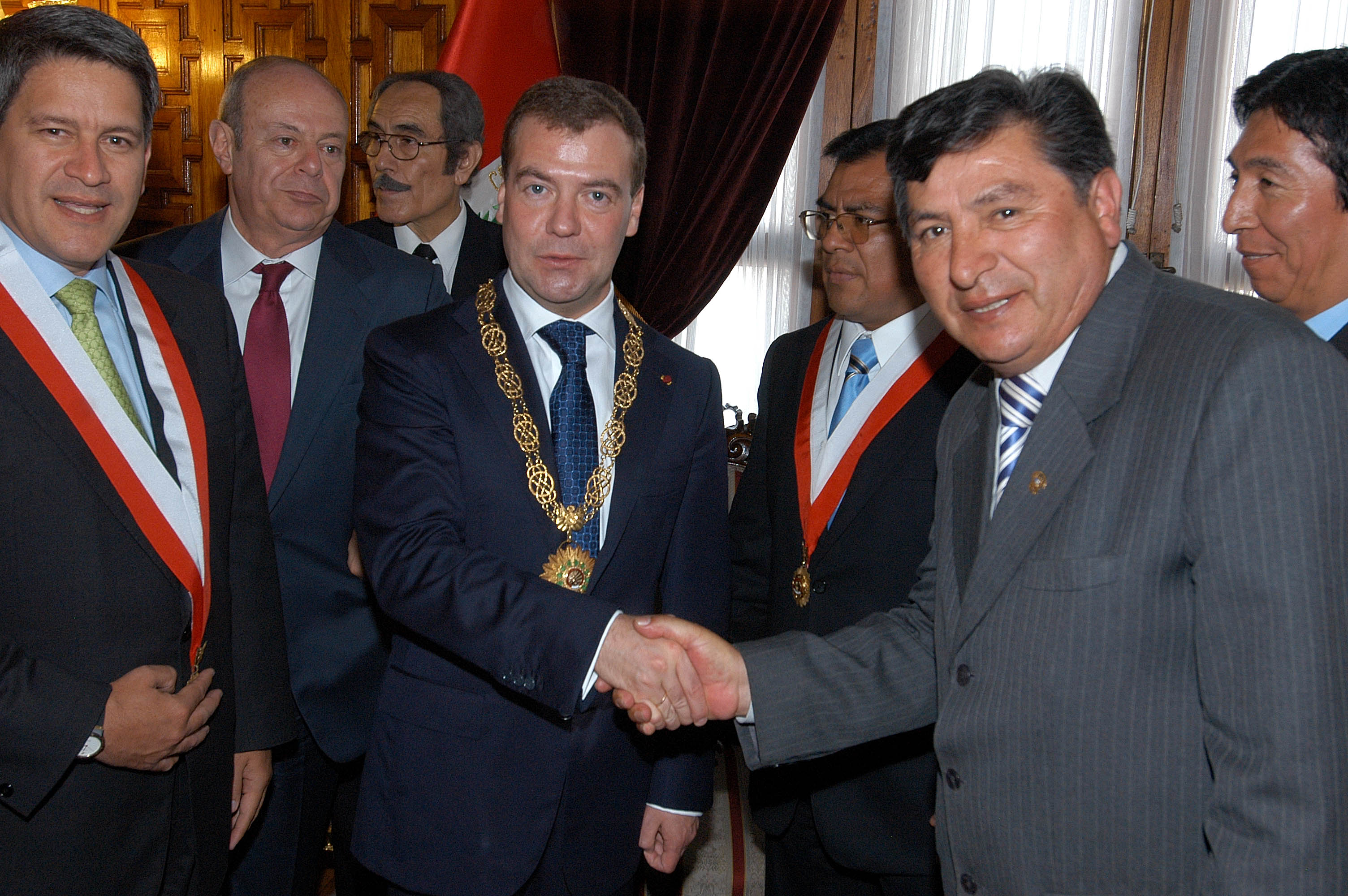 Congresista Antonio León Zapata, junto con el presidente de la Federación Rusia, Dmitri Medvédev, en su visita al Palacio Legislativo. 24-11-2008