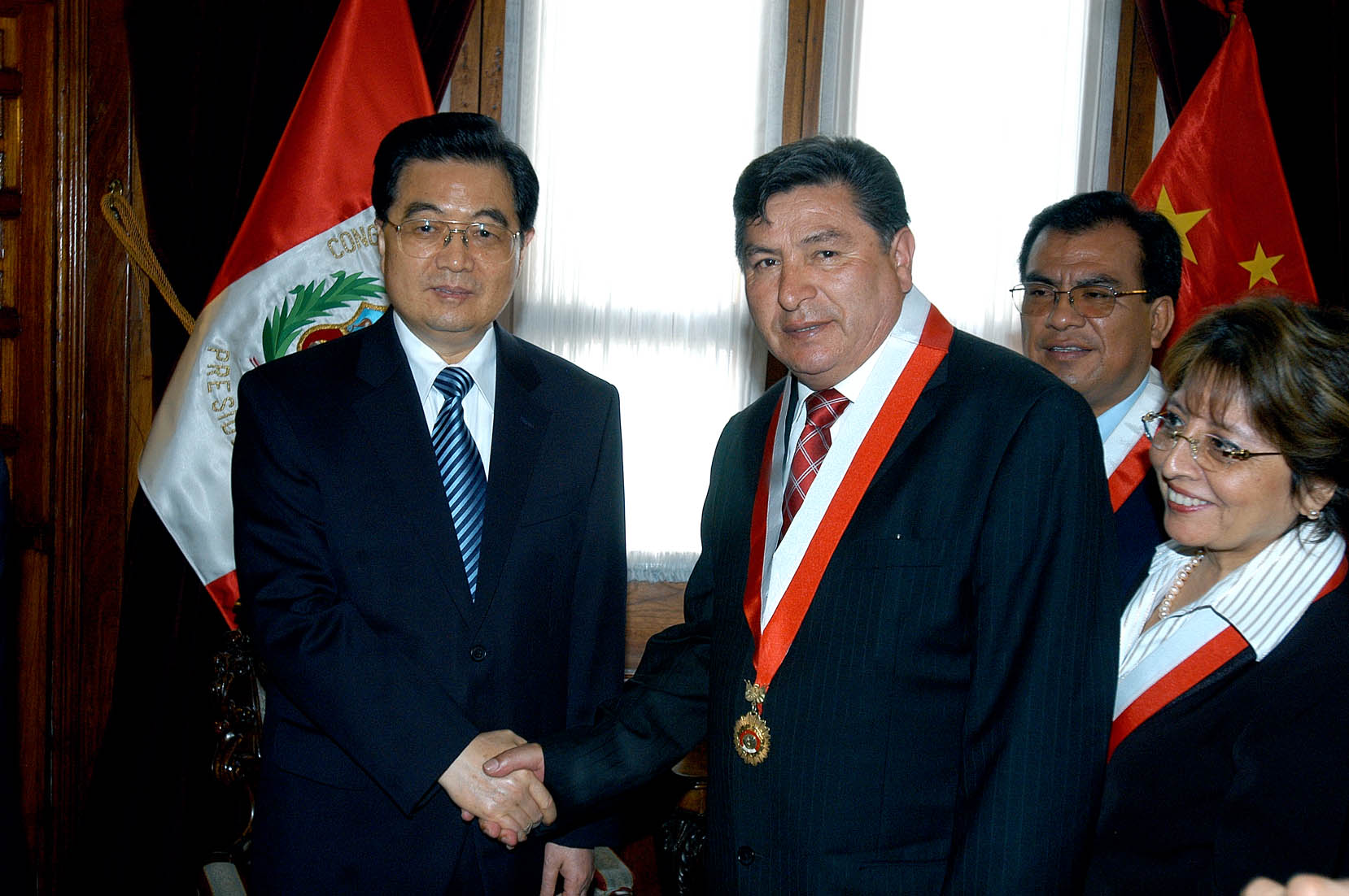 Congresista Antonio León Zapata, junto con el presidente de China, Hu Jintao, en su visita al Palacio Legislativo. 20-11-2008