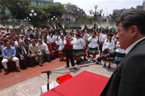 El congresista Antonio León zapata, da inicio, del VI Concurso Nacional Huaylías 2006, de Apurimac Antabamba, residentes en Lima. Publicado el día 03/12/2006