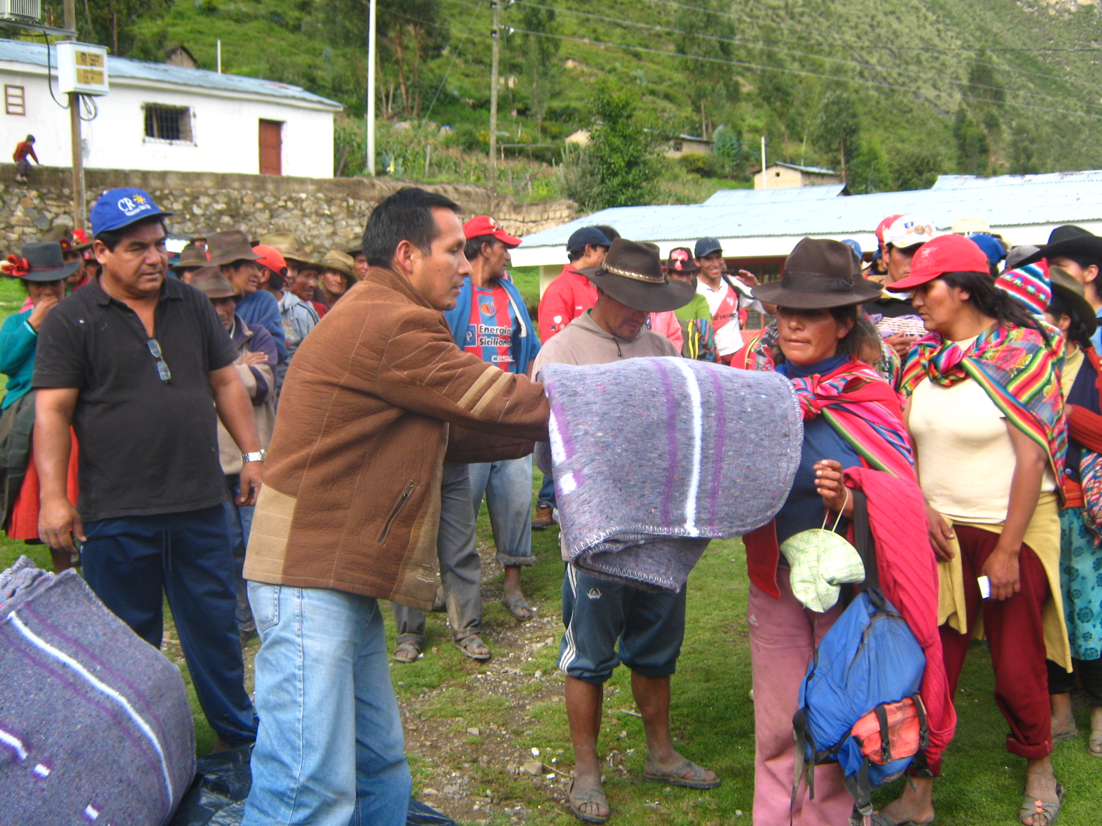 Pobladores de las provincias de Grau y Aymaraes del departamento de Apurímac, recibieron una donación de frazadas gracias a la gestión del Congresista Antonio León Zapata. Con esta ayuda el parlamentario contribuye a contrarrestar de alguna forma el intenso frío se sufre en las provincias altas de la Región Apurímac - 28 de febrero 2010. |