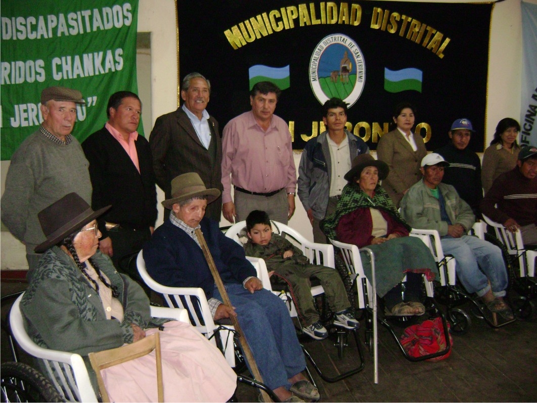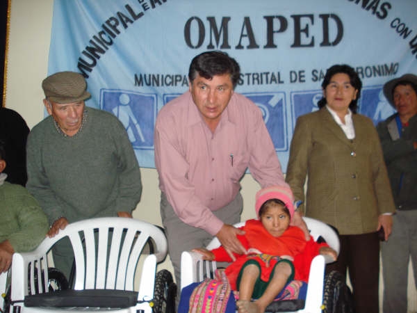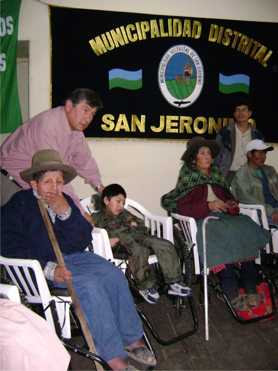 Congresista Antonio León Zapata entrega sillas de ruedas en San Jerónimo, gracias al Programa Mi Silla del Congreso de la República - 11 de julio 2008 |