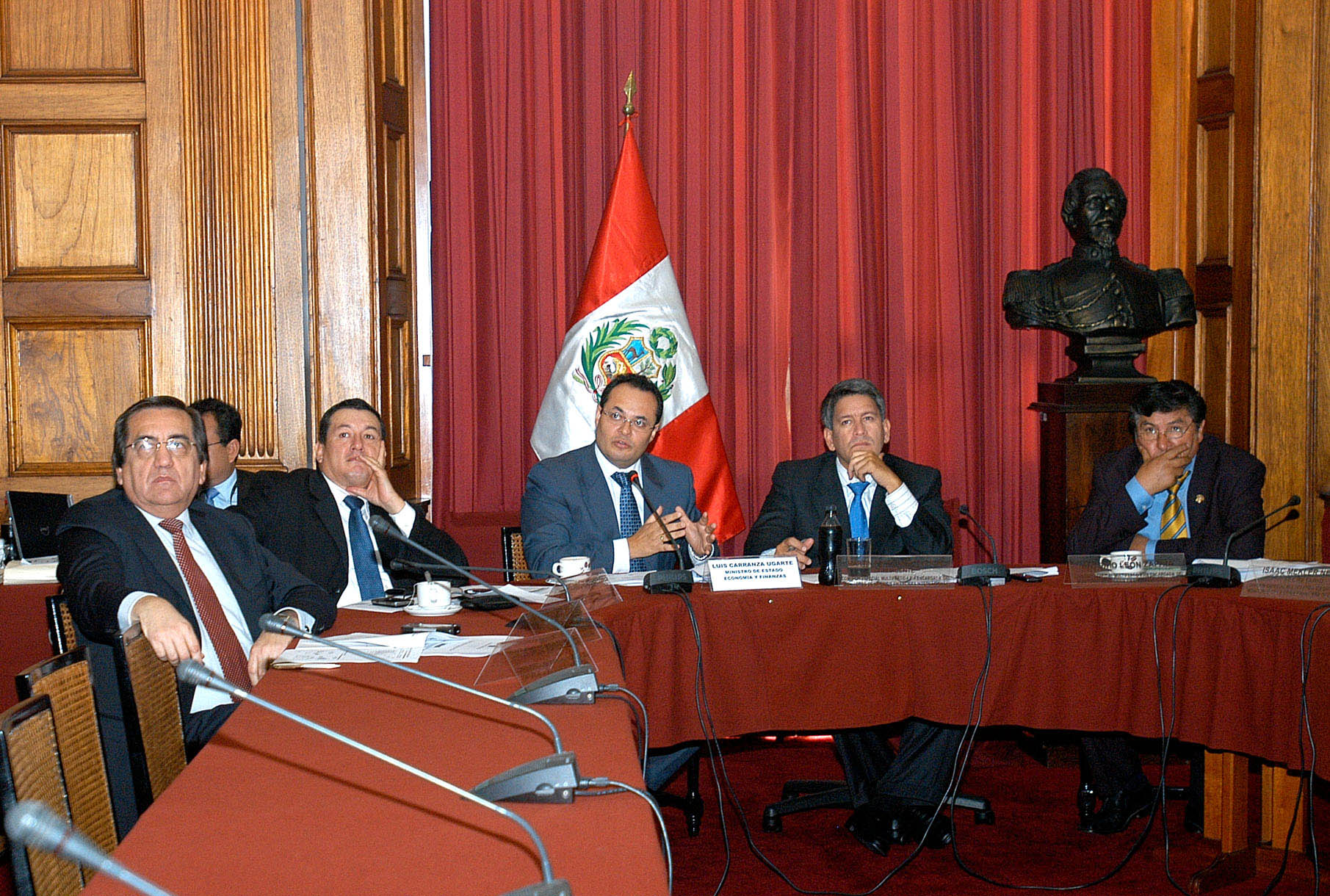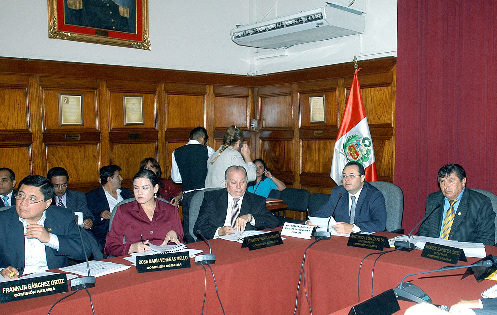 Comisión Agraria presidida por el vicepresidente de ese grupo de trabajo, Antonio León. Zapata, recibió al ministro de Economía Luis Carranza, donde explico Comisión Agraria para explicar la deuda que el Estado mantiene con los expropiados de la reforma agraria. 08 de mayo 2009. |