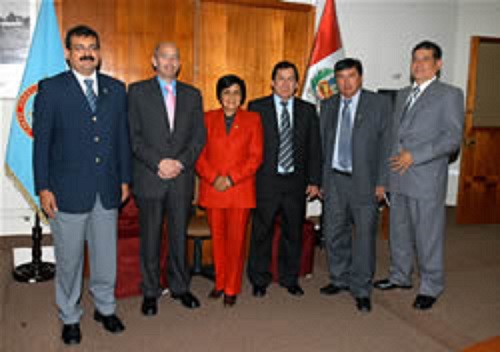 Sesión de Instalación de la Liga Perú-Rusia. En la foto (de izq. a der) los congresistas Carlos Cánepa, Isaac Mekler, Gloria Ramos, José Vega, antonio León y José Saldaña. Publicado el día 11/10/2006 |