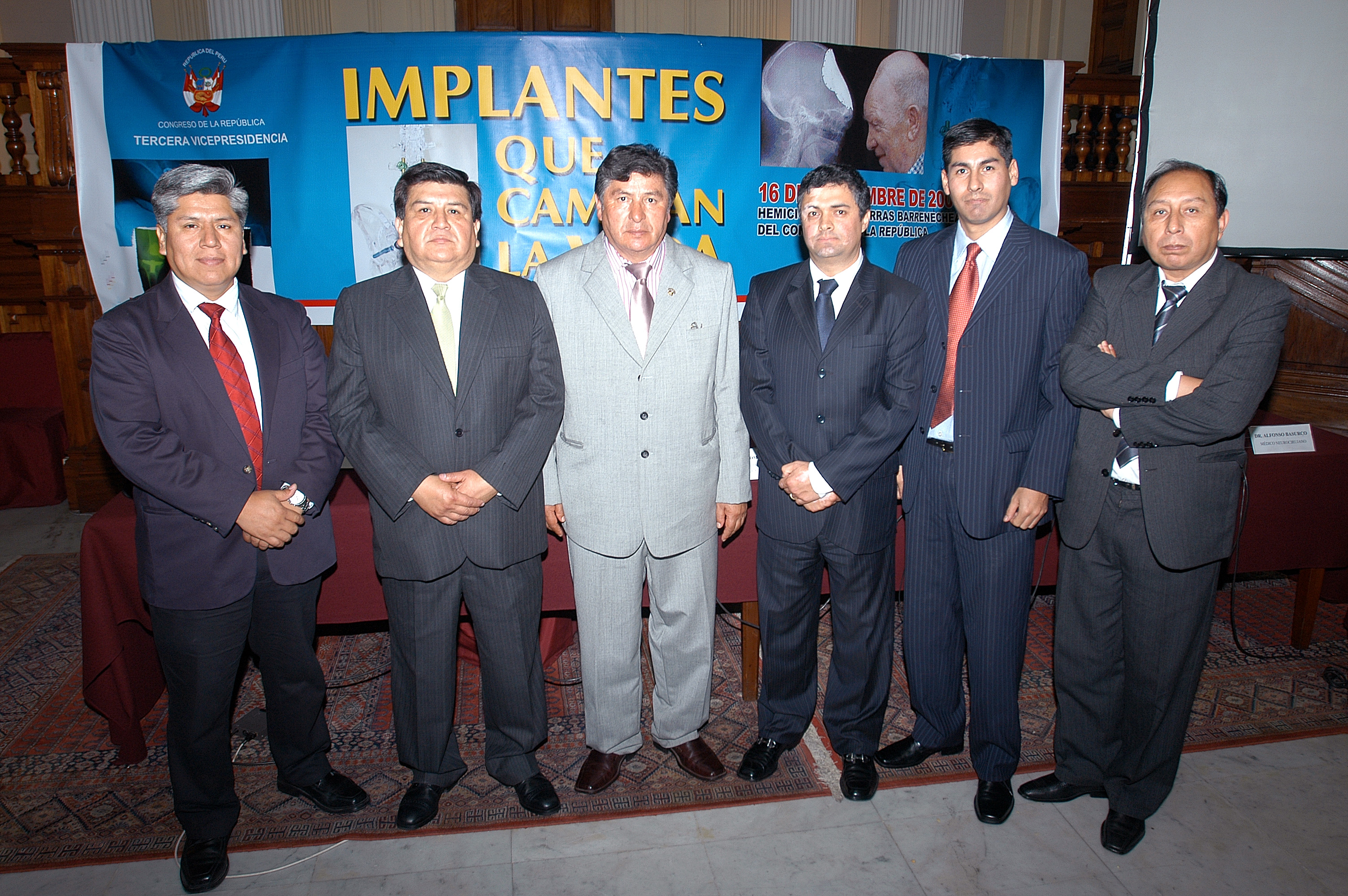 El Tercer Vicepresidente del Congreso de la República, Antonio León Zapata, organizó con éxito el foro denominado: “Implantes que cambian la Vida”. El mismo que tuvo como expositores a prestigiados médicos y directores de clínicas y hospitales de nuestro país, quienes que se congregaron en el Hemiciclo Raúl Porras Barrenechea del Palacio Legislativo, para explicar modernas técnicas de los implantes de reconstrucción ósea – 16 de noviembre 2009. |