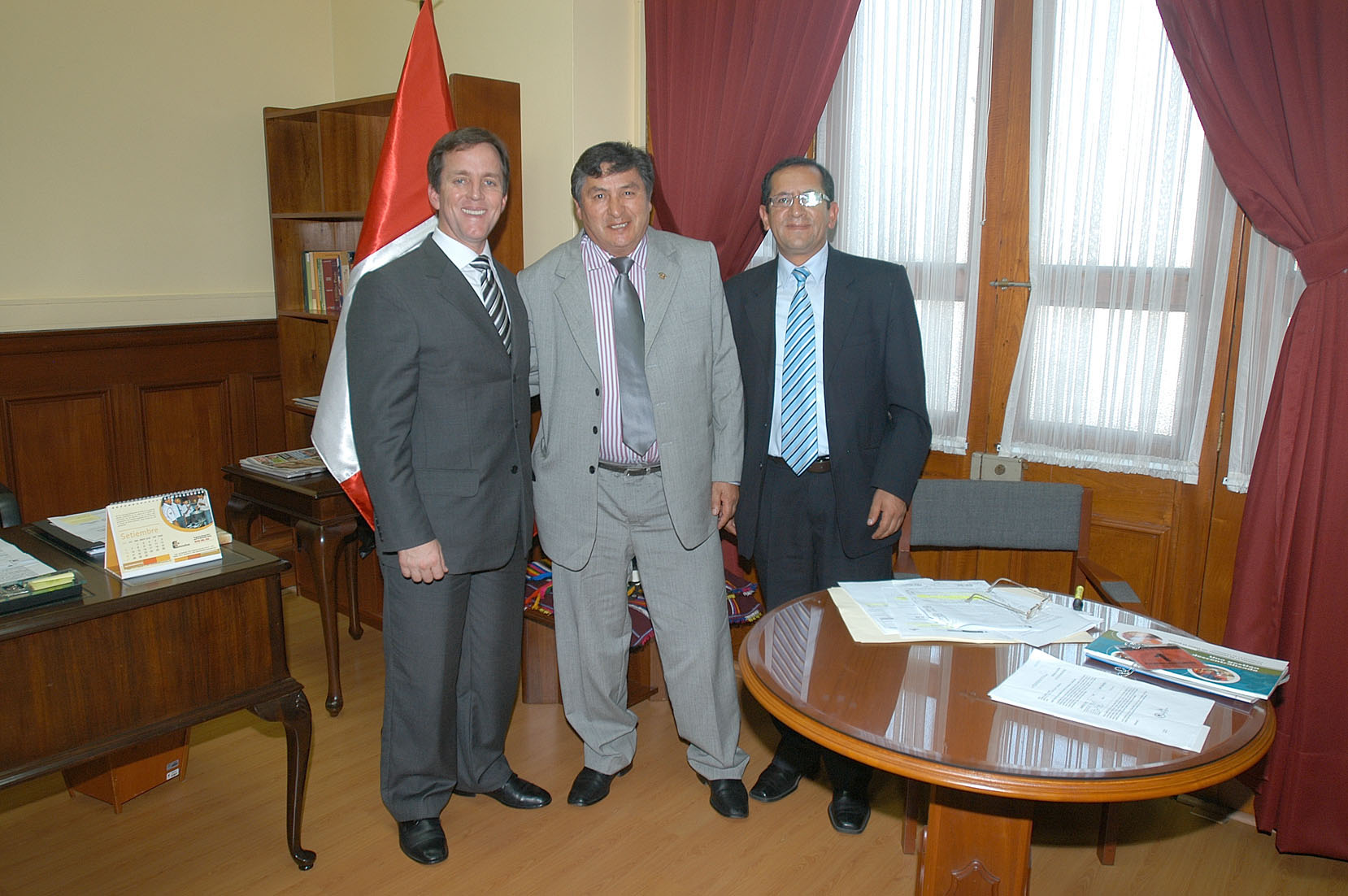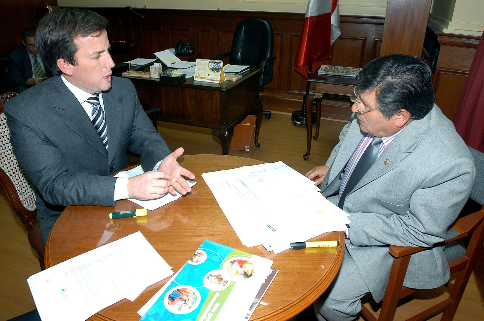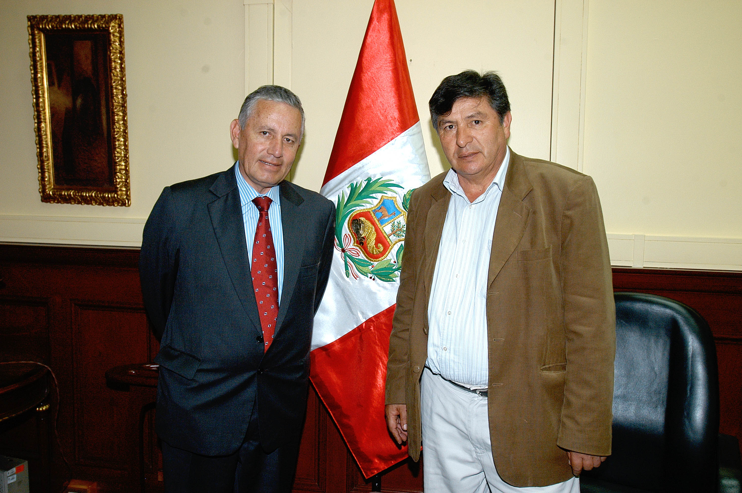 El tercer vicepresidente del Congreso, Antonio León Zapata, recibió al ministro de Vivienda y Construcción, Francis Allison, a quien le expuso las necesidades y proyectos pendientes de ejecución en su región Apurímac - 18 de agosto 2009. |