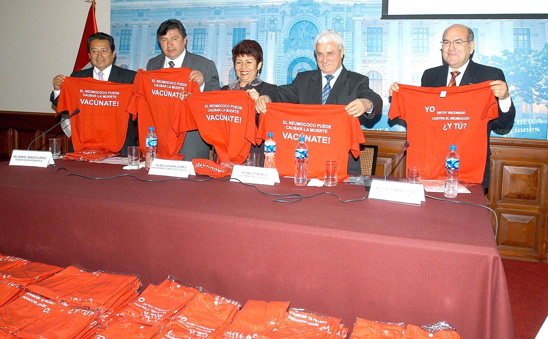 El Vicepresidente del Congreso, Antonio León Zapata, estuvo presente en la entrega de un donativo por parte del Congreso de la República al Viceministro de Salud, Melitón Arce Rodríguez; consistente en 500 mil tarjetas de vacunación y cinco mil polos con lemas alusivos para reforzar la campaña de prevención contra el neumococo que viene realizando el MINSA – 23 de setiembre 2009. |