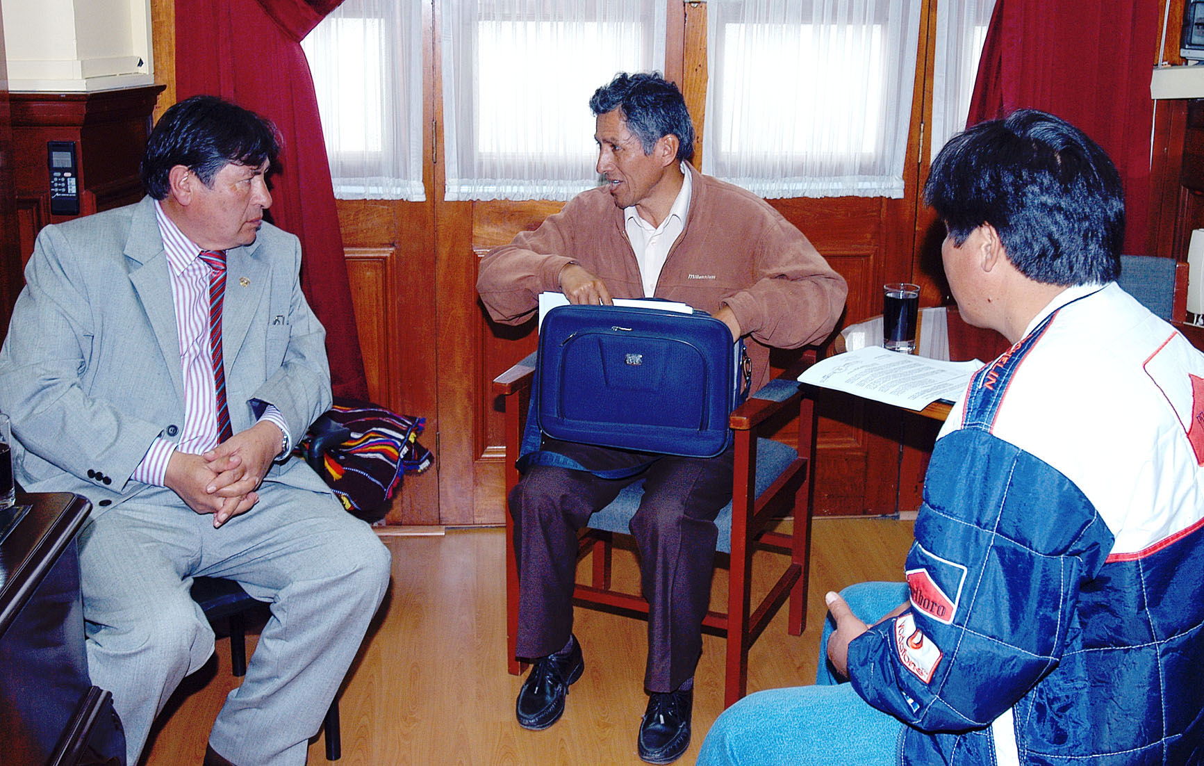Antonio León Zapata, tercer vicepresidente del Congreso, recibió a dirigentes de la Coordinadora de las Cámaras de Comercio de la Amazonía, encabezados por Jorge Luis Rojas, a quienes garantizó su compromiso de gestionar que se priorice en la próxima sesión del Pleno el proyecto sobre la restitución de las exoneraciones tributarias en la región amazónica – 22 de setiembre 2009. |