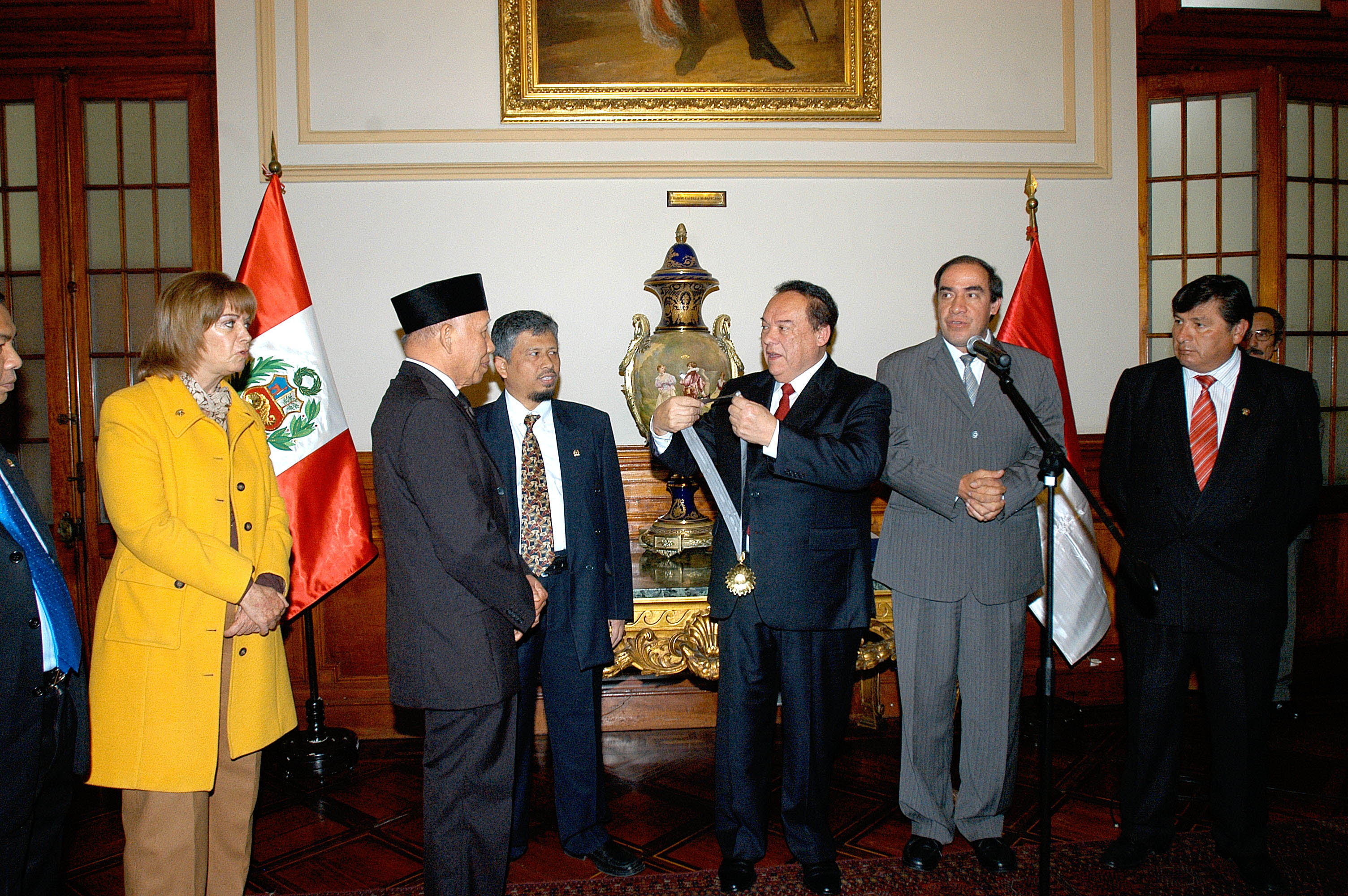 Tercer vicepresidente del Congreso de la República, Antonio León Zapata, estuvo presente en la condecoración al embajador de Indonesia en el Perú, Igde Djelantik, quien recibió la Medalla de Honor del Congreso de la República, en el Grado de Gran Oficial y diploma correspondiente, en mérito a su labor para el estrechamiento de las relaciones y lazos de cooperación entre ese país asiático y el Perú – 16 de setiembre 2009 |