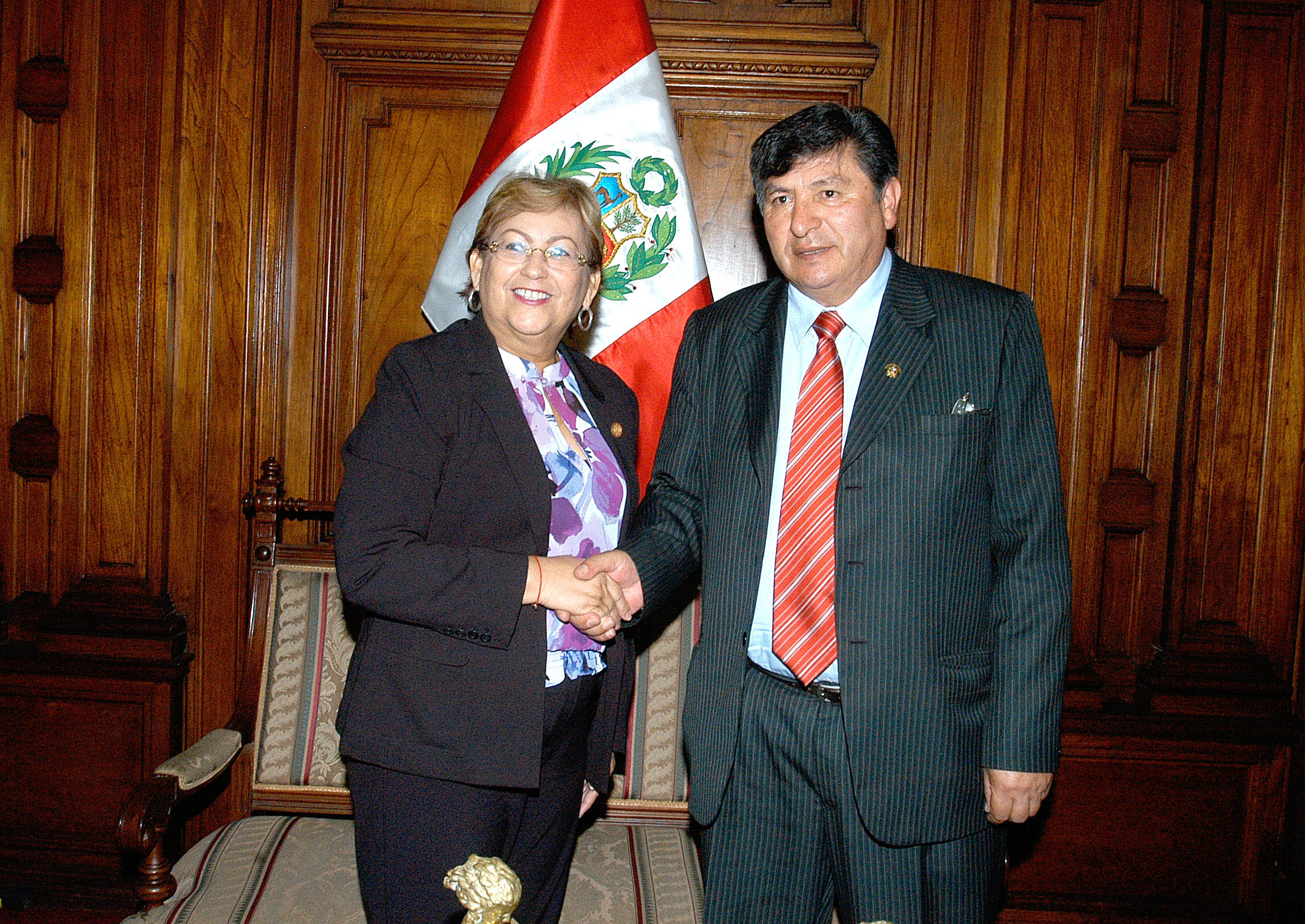 El tercer vicepresidente del Congreso de la República, Antonio León Zapata, recibió la visita de la senadora puertorriqueña Luz Arce Ferrer, con quien dialogó sobre temas relacionados con la educación. La reunión se desarrolló en la Sala de Embajadores del Palacio Legislativo – 28 de agosto 2009 |