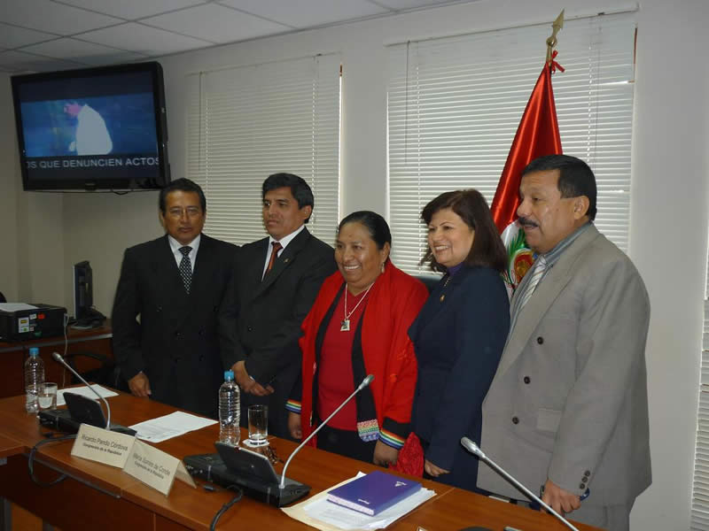 Presidenta de Comisión de Seguridad Social, María Sumire, con su Junta Directiva y congresistas miembros de la Comisión |