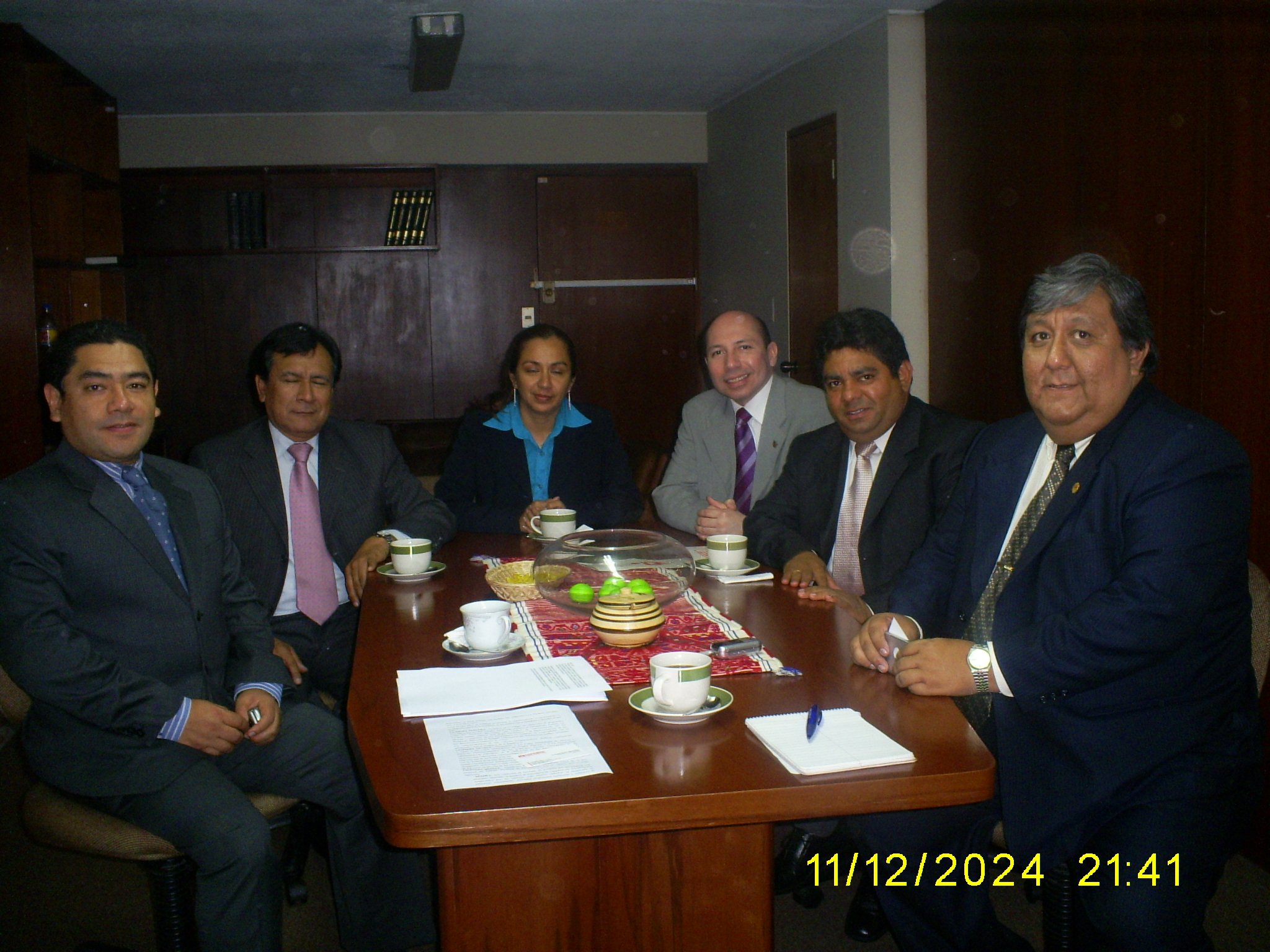Reunión de trabajo con los representantes de las Cajas Municipales de Ahorro y Credito Congresista Marisol Espinoza Cruz, Joel Siancas Ramirez Presidente del Directorio de la Caja Municipal de Sullana, Augusto Ñamó Mercedes Presidente del Comité Directivo de FEPCMAC, Luis Izaguirre Gerente de la FEPCMAC, Samy Calle Renteria Gte. Caja Municipal de Sullana, Milton Carpio Barbieri Asesor Legal de la FEPCMAC. |