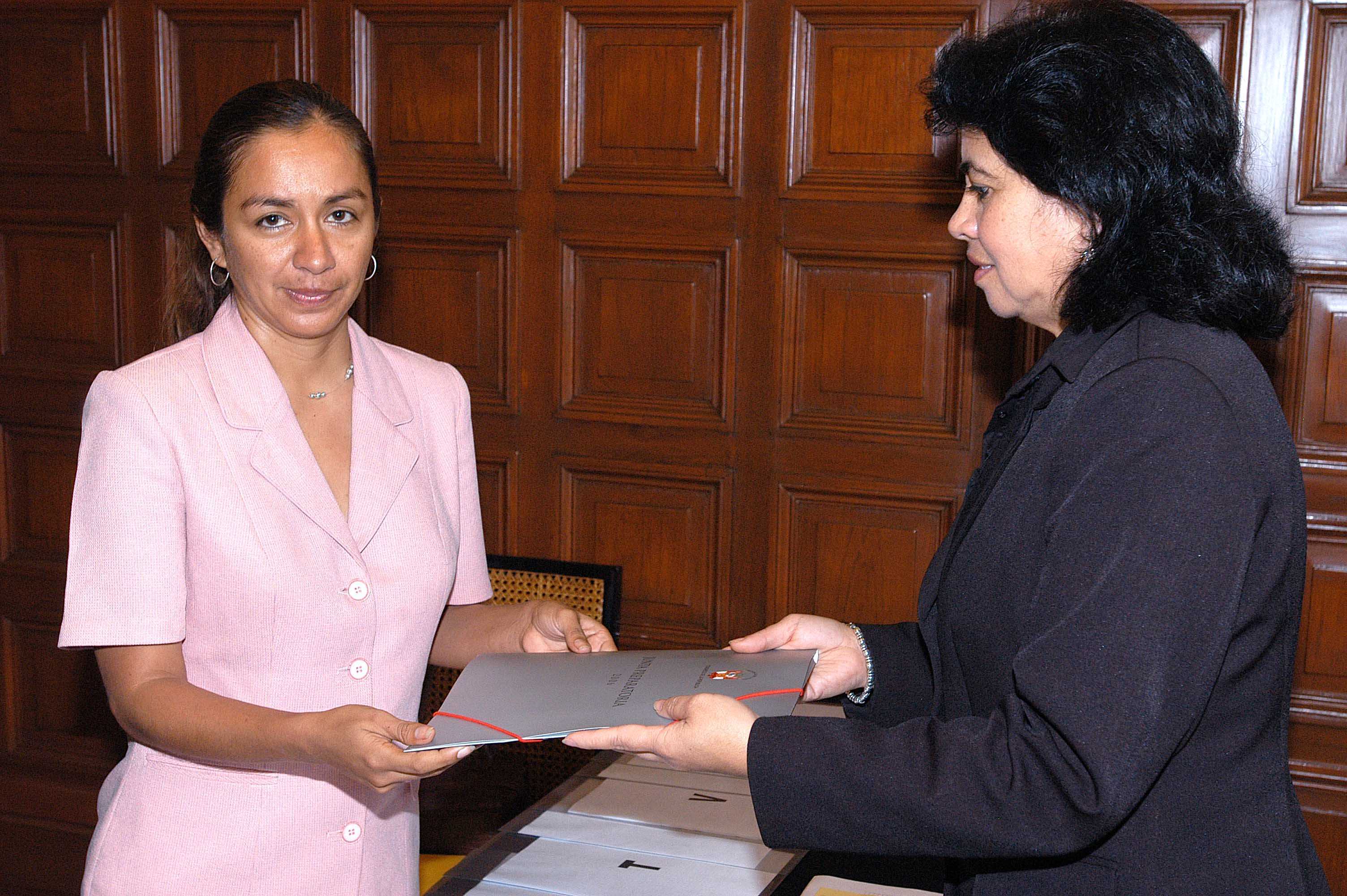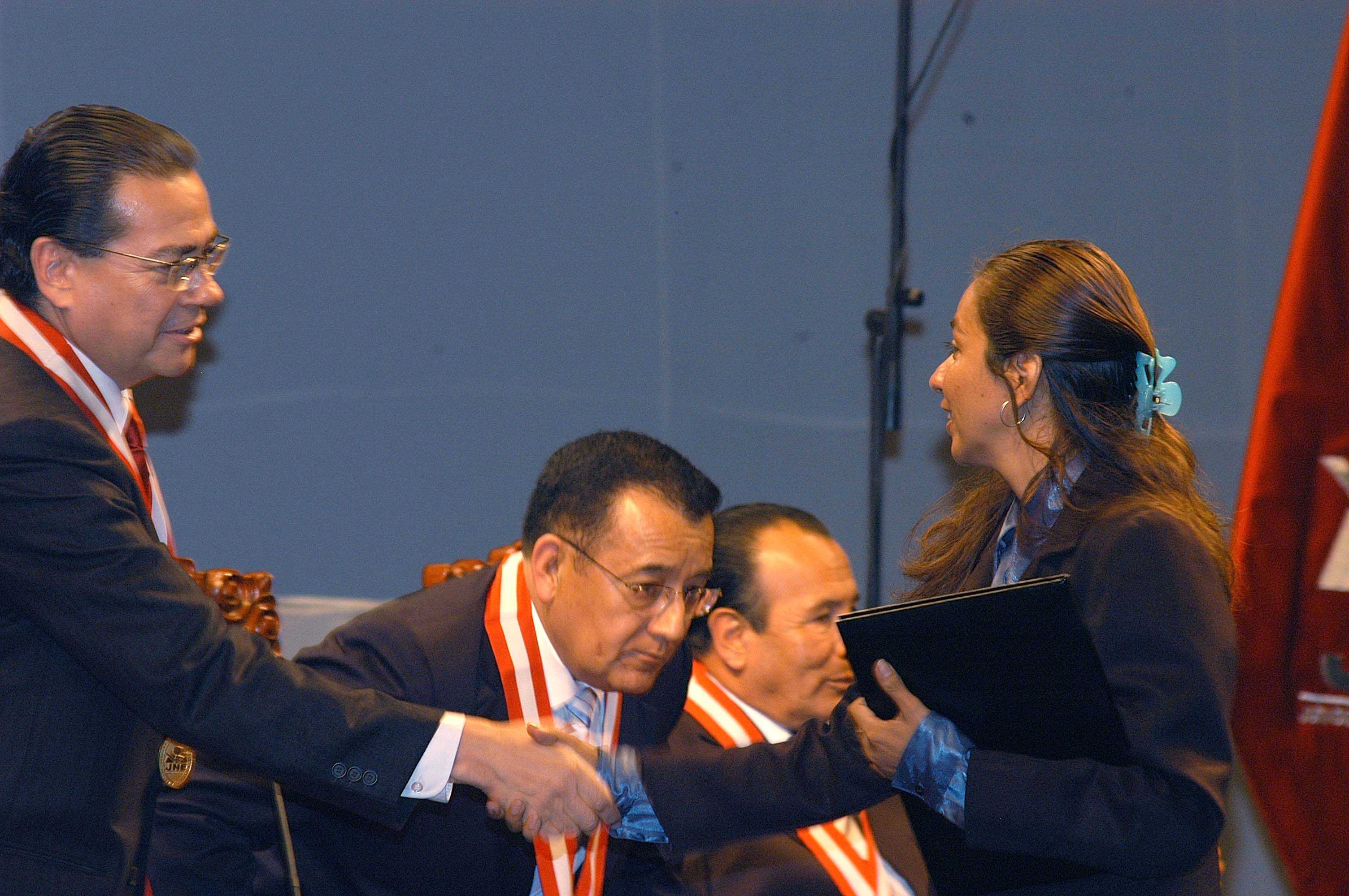 Recibiendo la Credencial como congresista electa de manos del Presidente del Jurado Nacional de Elección Enrique Mendoza Ramirez. |