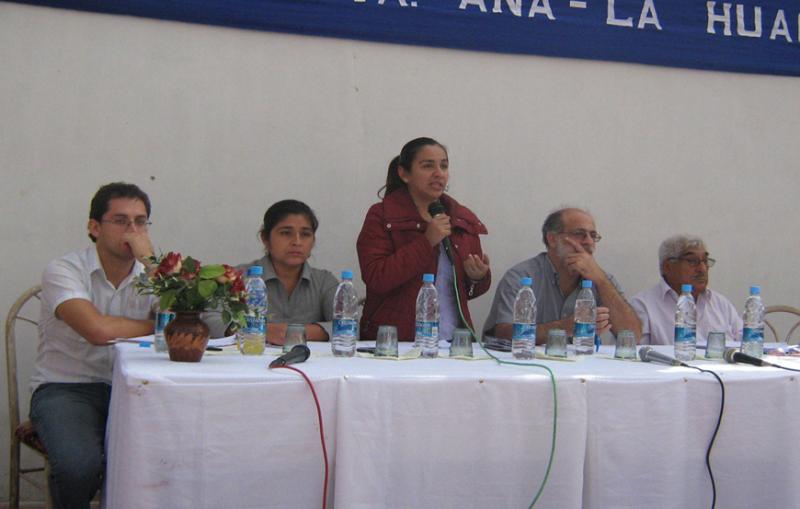 Audiencia Pública en La Huaca- Paita Congresista Marisol Espinoza tomando la palabra para dirigirse a pobladores, agricultores, autoridades y Comuneros durante el desarrollo de la Sesión de Trabajo en el distrito de La Huaca,a raíz del conflicto social originado por la venta sin consulta a la población de 12,000 hectáreas de terreno a las empresas agroindustriales MAPLE ETANOL S.R.L y AGRICOL ... |