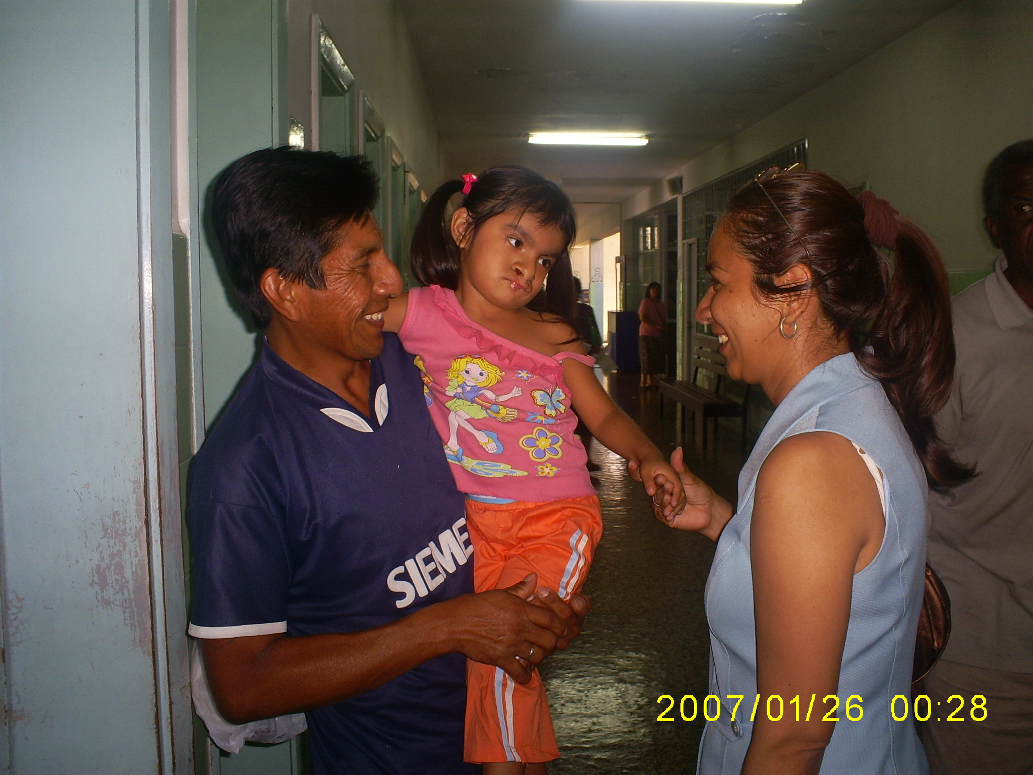 Apoyando a la niñez piurana más necesitada Saludando a niña que será intervenida en el Hospital cayetano Heredia de Labio Leporino |