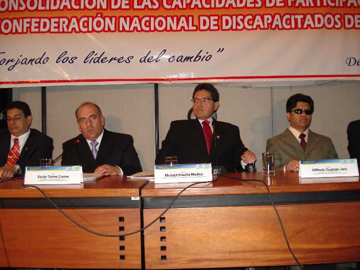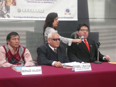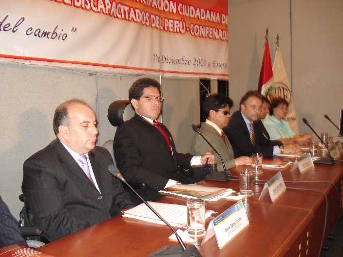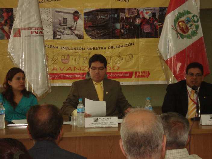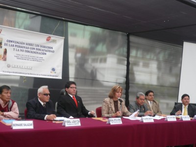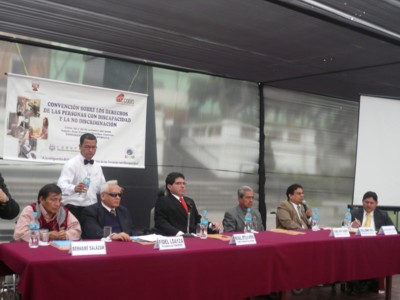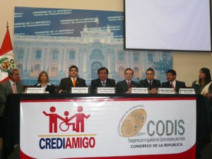En el Seminario taller : “Nuevos retos introducidos por la Convención de los derechos de las personas con discapacidad para las Organizaciones Peruanas de Personas con Discapacidad”, organizado por La Comisión Especial de Discapacidad - CODIS, juntamente con la Coordinadora Nacional de Asociaciones de Personas con Discapacidad – CONAPEDIS, y la Coordinadora Latinoamericana – RIADIS, se contó con la presencia de la Congresista Luisa María Cuculiza, el Congresista Franco Carpio Guerrero, el Sr. Guillermo Vega presidente de CONADIS, y expositores internacionales expertos en el tema de la Discapacidad, dicho seminario se realizó los días 23 y 24 de octubre del presente en el Palacio Legislativo |