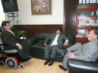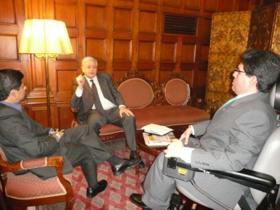 El Congresista Michael Urtecho Medina se reunió con máximo representante de Fundación KONRAD ADENAUER, en la Sala de Embajadores de Palacio Legislativo el día 30 de junio del 2008, donde expuso la problemática de las personas con Discapacidad en el Perú, también participo en esta reunión el Congresista Luis Galarreta quien también es persona con discapacidad. |