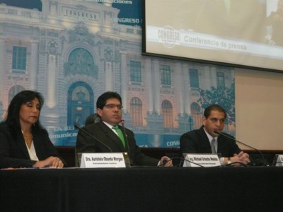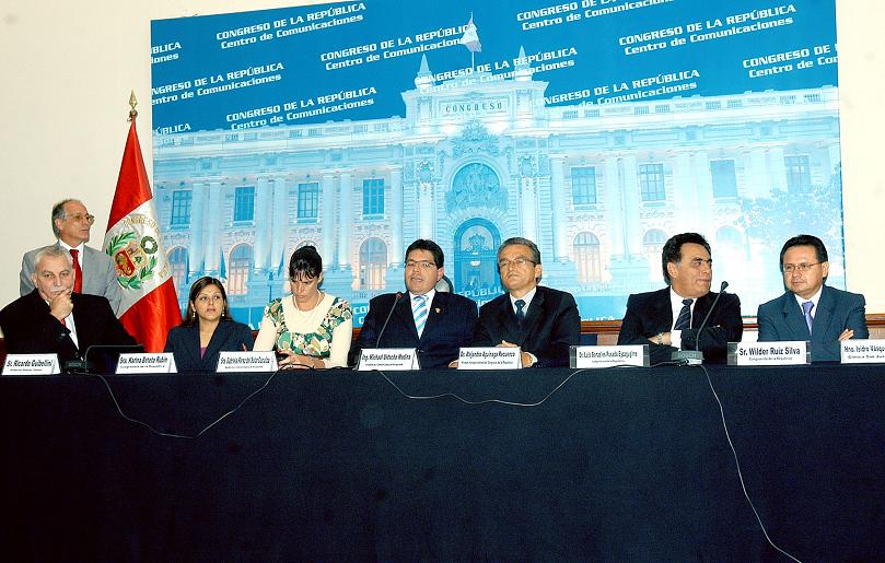 Congresista de todas las Bancadas Parlamentarias, manifiestan su respaldo para la realización de la Teletón 2008, a favor de la Clínica San Juan de Dios y los niños con discapacidad de extrema pobreza, durante la conferencia realizada por el Congresista Michael Urtecho Presidente de la Comisión Especial de Discapacidad del Congreso el día 09 de diciembre del 2008, en la Sala Gustavo Mohme del Palacio Legislativo. |