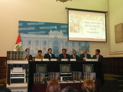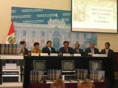 El día 21 de julio del 2008, en la Sala Mhome El Congresista Michael Urtecho Medina Presidente de la Comisión Especial de Discapacidad, acompañado del Dr. Luis Gonzáles Posada Presidente del Congreso, los Vicepresidente del Congreso y el Gerente General de Minera Perú Kopper, realizó el lanzamiento de la página Web del Congreso accesible a personas con discapacidad, así mismo se publicó la primera parte de la historia del Perú en versión braille titulado “Los Incas” del Autor Franklin Pease G. Y. |