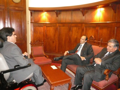 En la reunión que sostuvieron el Congresista Michael Urtecho Medina y el Primer Ministro Sr. Yehude Simon, el Primer Ministro manifestó la voluntad de la PCM para conformar una Comisión Multisectorial que se encargue de la Implementación de la Convención de Derechos de las personas con discapacidad y la aprobación del Plan de Igualdad de Oportunidades para las personas con discapacidad - PIO 2007-2016. 13/1/08. |