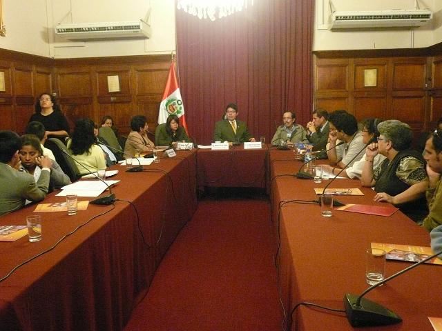 Representantes de las instituciones y asociaciones del colectivo de personas sordociegas participaron en la Mesa de Trabajo sobre “Sordoceguera”, que realizó la Comisión Especial de Discapacidad del Congreso en la Sala Bolognesi del Palacio Legislativo, con la finalidad de debatir y mejorar el Proyecto de Ley que busca reconocer a la sordoceguera como discapacidad única. 24/11/08. |