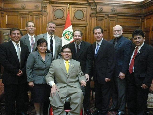 Congresista Michael Urtecho Medina recibió en la Sala de Embajadores del Palacio Legislativo a representantes de la Fundación WHEL CHAIR de los Estados Unidos. 19/11/08. |